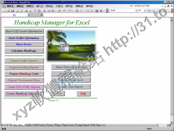 • Handicap Manager For Excel v5.2b Regged 英文正式版(用於高爾夫運動的統計及維護軟體)