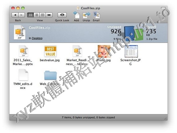 WinZip Mac版本的介面看起來比Windows版本大氣不少,不過也簡潔了許多。但是